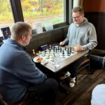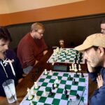 (August, 2025) The second casual play session for the Dirigo Chess Club was another smashing success! Beginner, intermediate, and advanced players met and played chess, shared strategies, and enjoyed socializing — with free drinks and appetizers! Rivalries has been warm and welcoming, with delicious food and beverages and a semi-private “mafia room” for play and interaction. During the autumn, we expect to have speakers and workshops — both live and remote — helping players improve their skills. We look forward to welcoming you at our next event!