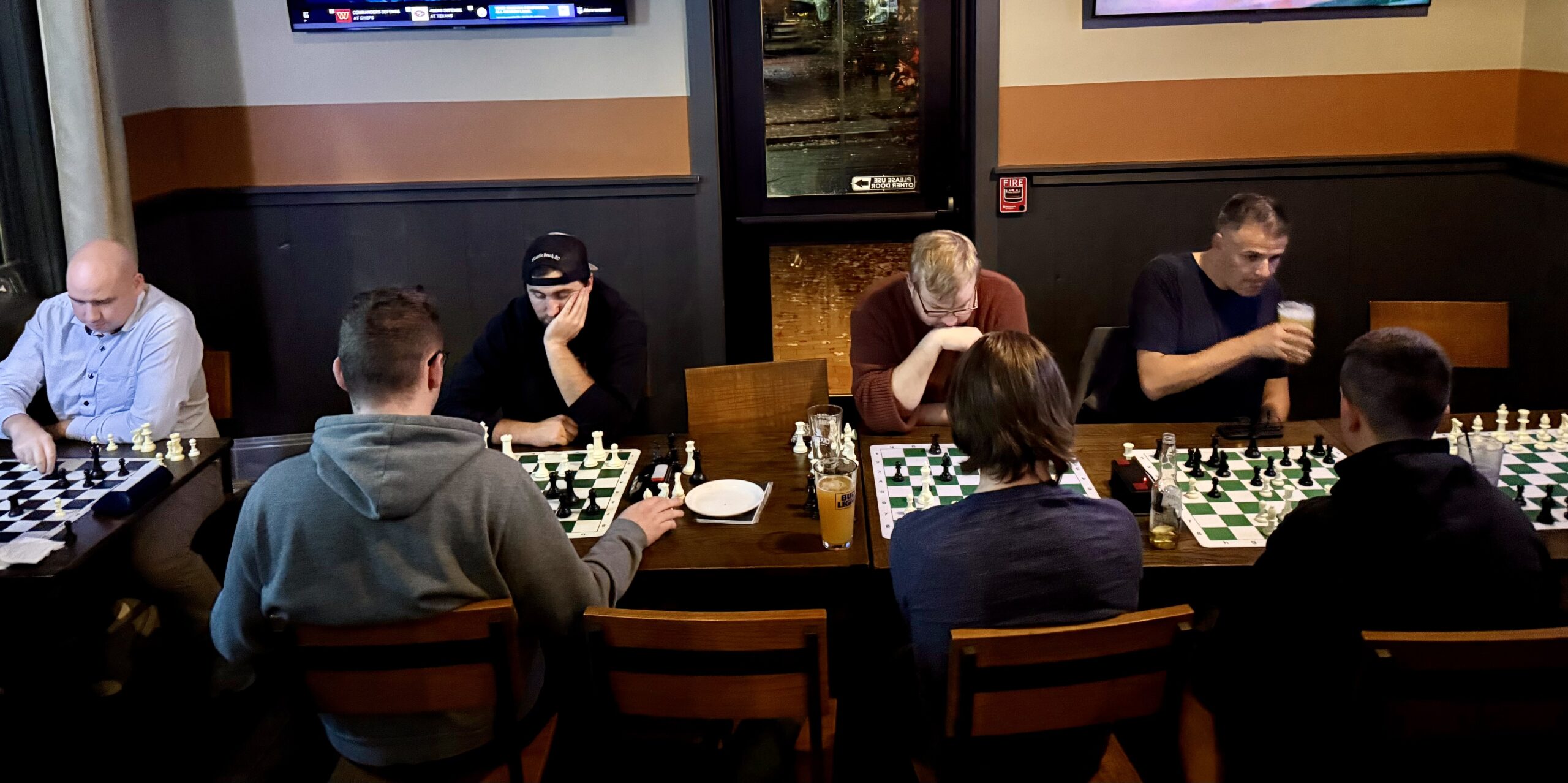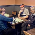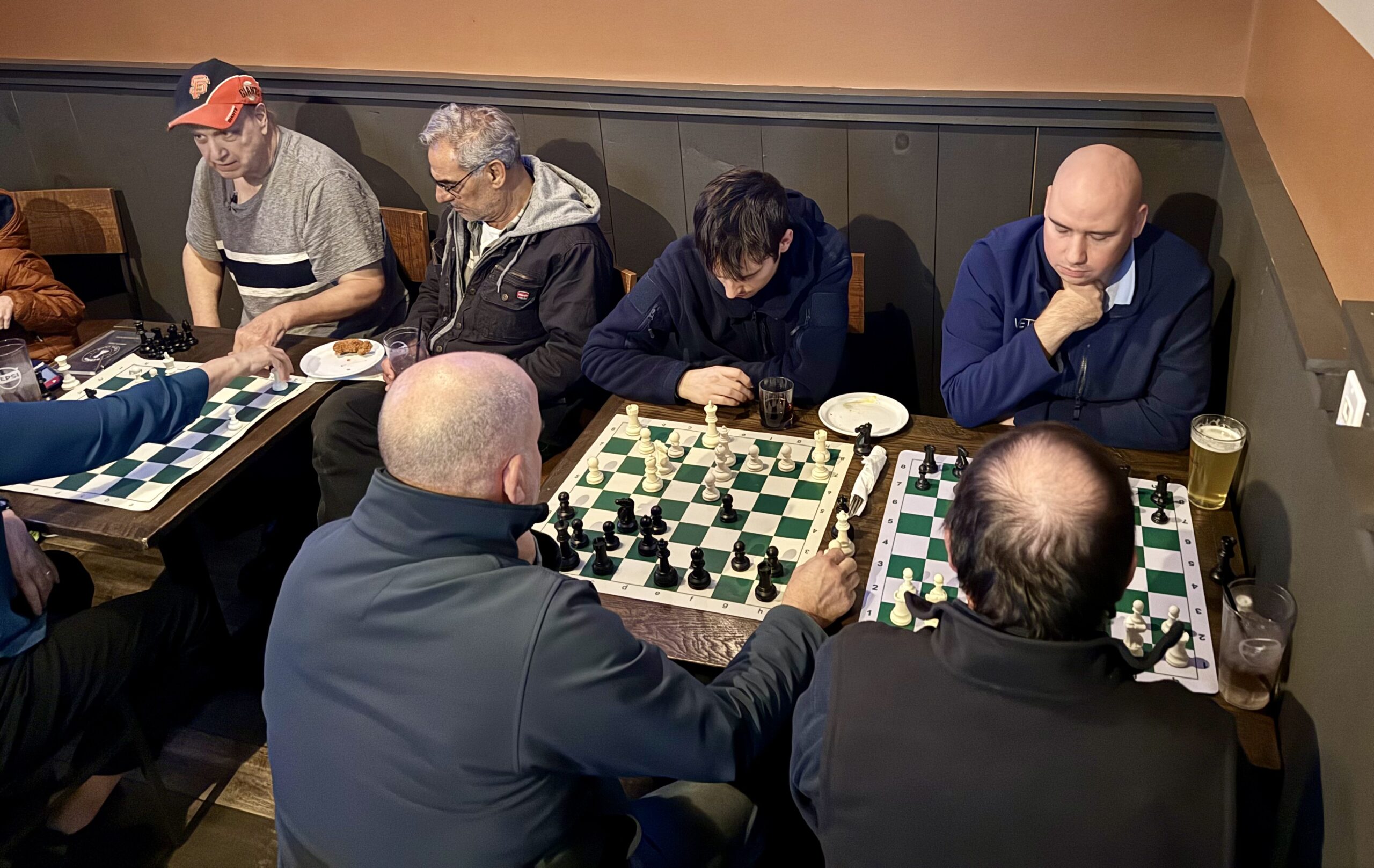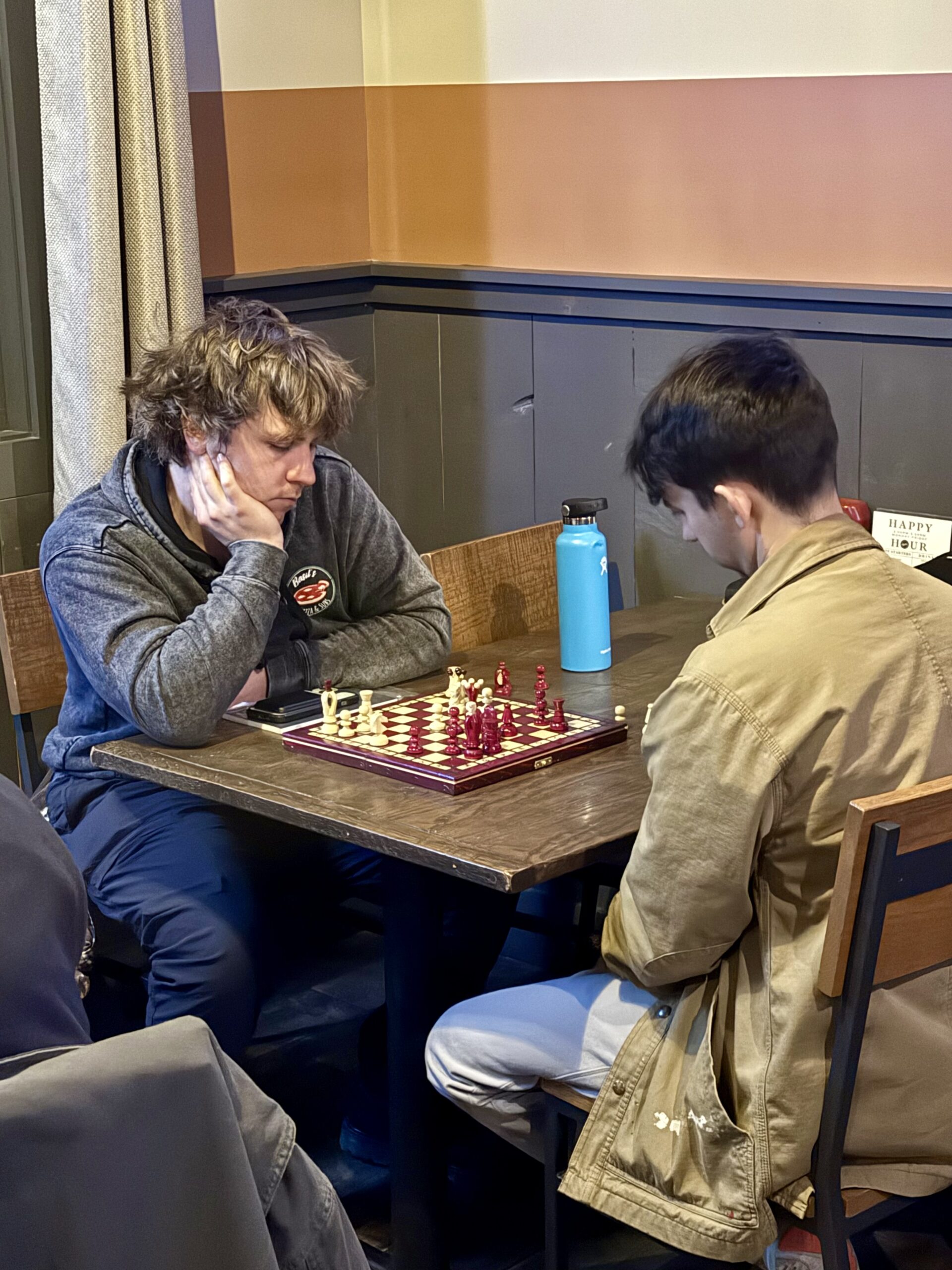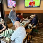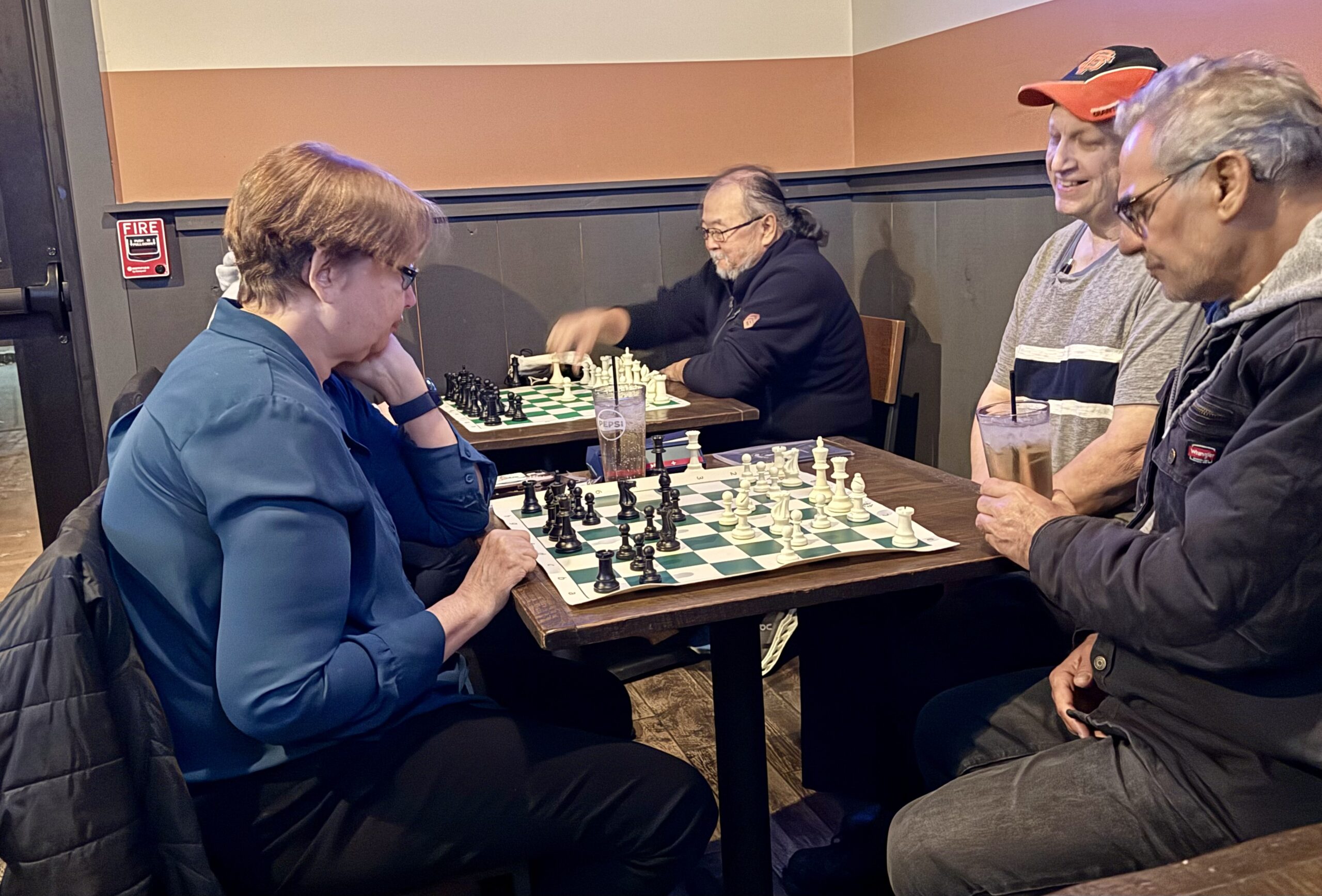 (October, 2025) Our most recent meetup at Rivalries in Falmouth had a packed house! We literally had to bring in some additional tables to fit all of the games taking place in the “Mafia Room.” Players of all levels competed — for fun — and everyone learned. Regardless of age, players enjoyed the “light” atmosphere, with no judgment and lots of camaraderie. Many of the guests in October were brand new to the club, and told us how terrific their time was that evening. We love hearing that! Bring your friends and spread the word — and bring a chess set to use if you can, as we have limited sets to borrow.